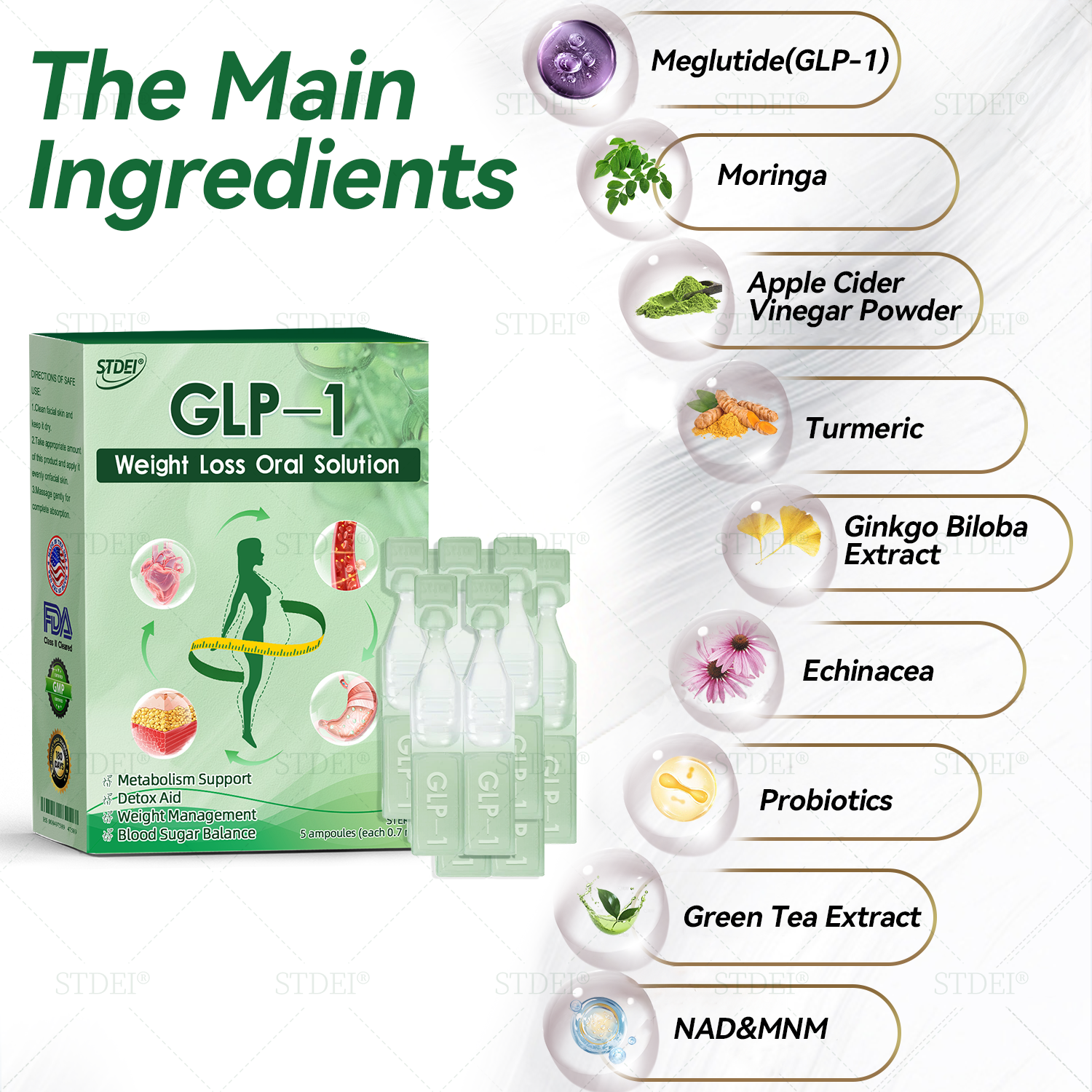 NAD&MNM:ย NAD & MNM boost mitochondrial energy metabolism, enhance cellular repair, and accelerate fat burning. They also delay aging, reduce free radical damage, and increase overall vitality.