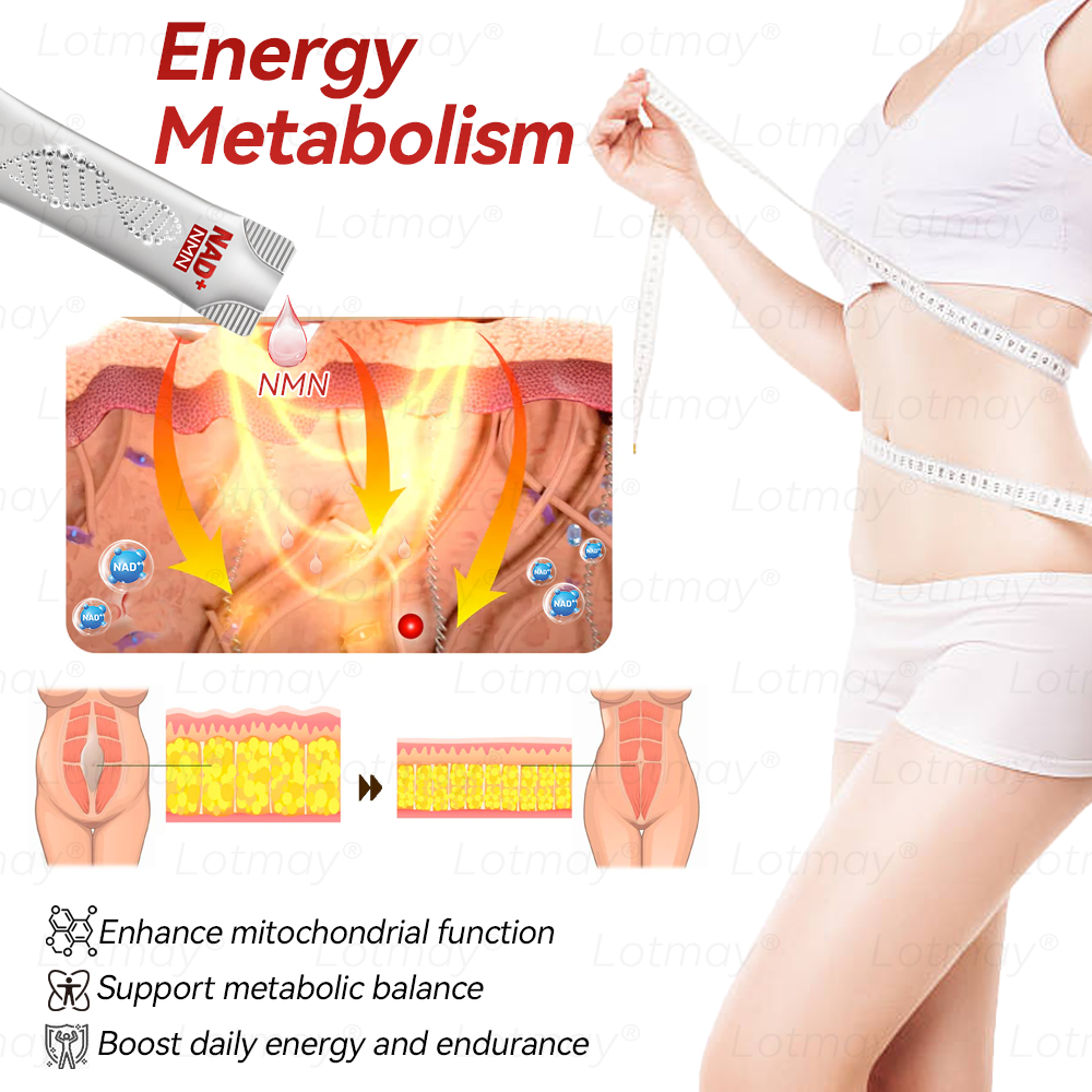 NMN rapidly converts to NADโบย within the body, boosting cellular energy and promoting collagen synthesis. This deeply improves skin firmness and elasticity, helping to smooth wrinkles and sagging. Urolithin A activates mitochondrial renewal, enhancing cellular repair and metabolic efficiency to delay signs of skin aging. Combined with CoQ10's antioxidant properties, it shields collagen fibers from free radical damage, reducing dark spots and dullness. This synergistic trio not only firms and plumps the skin but also brightens the complexion, redefines contours, and naturally restores a youthful radiance.